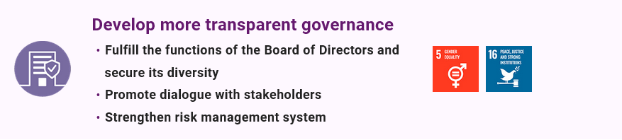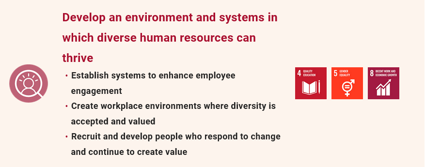 At Iwatani, we consider a sound understanding of and efforts to achieve the Sustainable Development Goals (SDGs) adopted by the United Nations in 2015, essential aspects of identifying materiality. By validating the relationship between each materiality and the 17 Goals and 169 Targets of the SDGs and identifying which SDGs relate to each materiality, the Iwatani Group will contribute to widespread innovations throughout society.